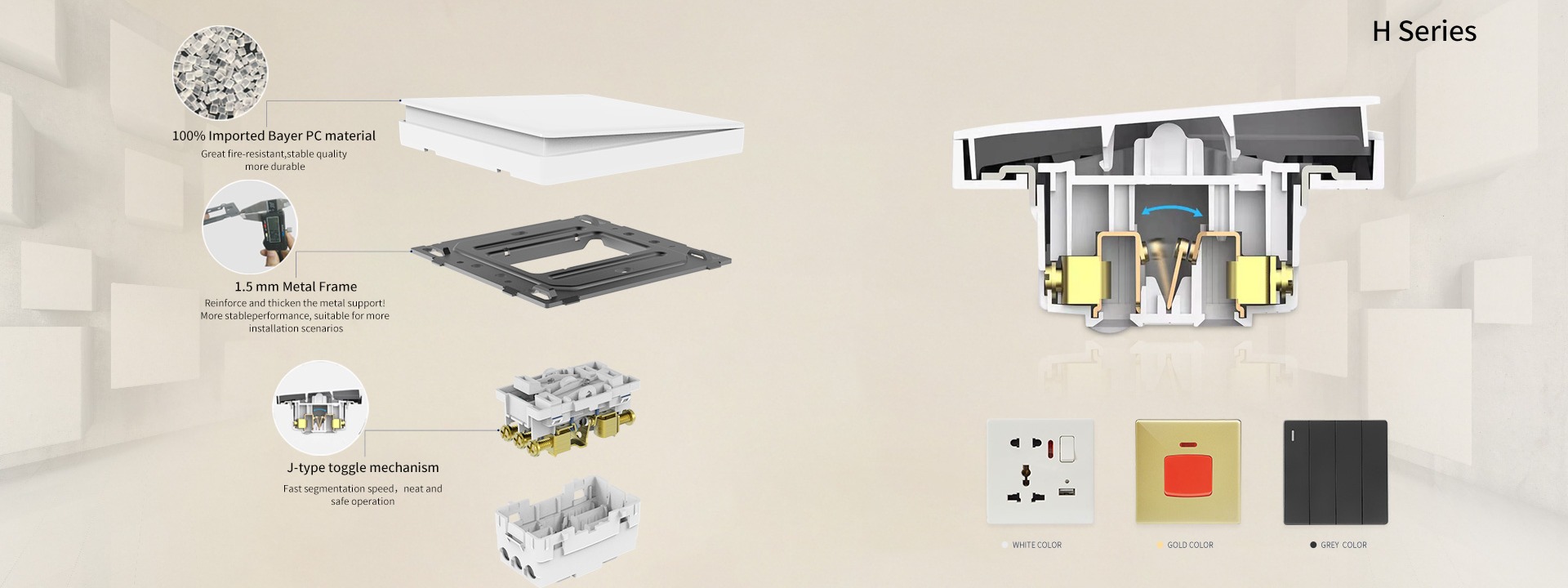 주요 제품:벽 스위치, 벽 소켓, 와이어 및 케이블, 전기 액세서리, 회로 차단기
