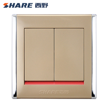 Interruptor de Pared SHARE con Diseño de Solapa, Precio de Fábrica, Color Dorado, 16A 250V 86*86mm, 2 Gang, 2 Vías, Luz Eléctrica 86*86